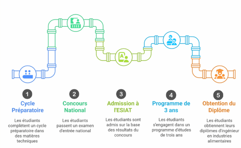 à l’Ecole Supérieure des Industries Alimentaires de Tunis, en vue de la préparation et de l’obtention du « Diplôme National d’Ingénieur », se fait sur concours national après un cycle préparatoire (option Mathématique & Physique, option Physique & Chimie, option technologie).